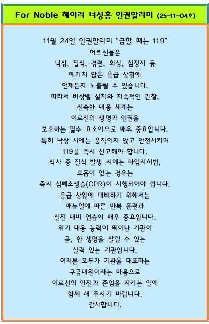 11월 4주처 인권알리미는 “급할때는 119”